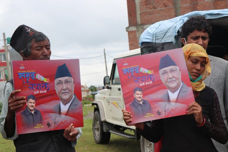 भक्तपुर, २४ जेठ : प्रधानमन्त्री केपी शर्मा ओलीलगायत गीतकार रहेको गीति एल्बम ‘समृद्ध नेपाल, सुखी नेपाली’को विमोचन गरिएको छ । मध्यपुरथिमि नगरपालिका–४ कमेरोटारको खुला ठाउँमा आज दुई सडक मानव सानुकान्छा तामाङ र मुगा कार्कीले उक्त गीति एल्बमको विमोचन गर्नुभयो ।
