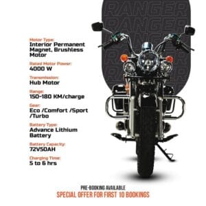 इलेक्ट्रिक बाइक कोमाकी रेन्जर  लुक्स भने क्लासिक क्रुजर स्टाइलको रहेको बताइएको छ । डबल डिस्क ब्रेक, आईसी इन्जिनकै बाइकमा भए जत्तिकै पावर ब्याकअप र सुपेरियर सस्पेन्स लगयत का फिचर  यो बाइक मा रहने बताइएको छ ।  सिंगल चार्जमा १८० किलोमिटर रेन्ज दिने  सो बाइकको मूल्य ४ लाख ३५ हजार रुपैयाँ तोकिएको छ । यद्यपि यसमा विभिन्न छुटहरु समेत उपलब्ध हुनेछ ।