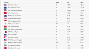 काठमाडौं । नेपाल राष्ट्र बैंकले बिहीबारका लागि विदेशी मुद्राको विनिमय दर तोकेको छ। अमेरिकी डलर एकको खरिद दर १२७ रुपैयाँ ५५ पैसा र बिक्री दर १२८ रुपैयाँ १५ पैसा पुगेको छ। यस्तै युरो एकको खरिद दर १२६ रुपैयाँ ३५ पैसा र बिक्री दर १२६ रुपैयाँ ९५ पैसा रहेको छ।