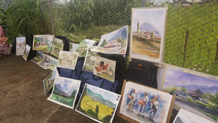 शनिबार भने त्यो अवसर राम्ररी जुरेन । मौसम परिवर्तनले नजिकबाट नियाल्न पाउने हिमशृङ्खलालाई क्यान्भासमा उतार्न नपाइए पनि बेलाबेलामा बादल छिचोल्दै टुप्लुक्क निस्कने हिम चुचुराले चार देशबाट जम्मा भएका एक सय १८ चित्रकारलाई एकतृत गराउँदथ्यो अनि दृश्य कैद गर्न मोबाइल ठड्याउँथे तर एकै छिनमा बालदभित्रै हराइदिन्थ्यो ती चुचुरा ।