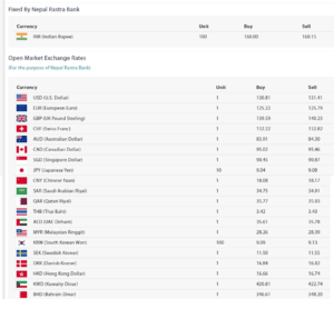 आज डलरको खरिद दर १३० रुपैयाँ ८१ पैसा र बिक्री दर १३१ रुपैयाँ ४१ पैसा रहेको छ। यो डलरको अहिलेसम्मकै उच्च रेट हो । युरो एकको खरिद दर १२५ रुपैयाँ २२ पैसा र बिक्री दर १२५ रुपैयाँ ७९ पैसा रहेको छ।