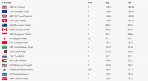 अमेरिकी डलर एकको खरिद दर १३२ रुपैयाँ ३८ पैसा र बिक्री दर १३२ रुपैयाँ ९८ पैसा पुगेको छ । युरो एकको खरिद दर १४५ रुपैयाँ ०१ पैसा र बिक्री दर १४५ रुपैयाँ ६७ पैसा रहेको छ।