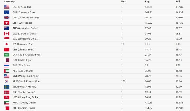 त्यस्तै, अमेरिकी डलरको खरिद दर १३२ रुपैयाँ २९ पैसा र बिक्री दर १३२ रुपैयाँ ८९ पैसा रहेको छ । युरो एकको खरिद दर १४४ रुपैयाँ ७१ पैसा र बिक्री दर १४५ रुपैयाँ ३७ पैसा रहेको छ।