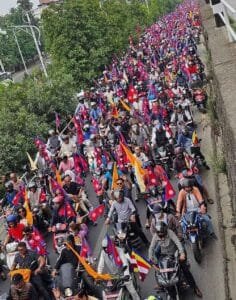 बबरमहलमा जम्मा भई पार्टीले माइतीघर, थापाथली, त्रिपुरेश्वर, सुन्धारा, न्युरोड, जमल, महेन्द्र सालिक हुँदै नारायणहिटीसम्म मोटरसाइकल ऱ्याली गरी प्रदर्शन गरेका हुन्।