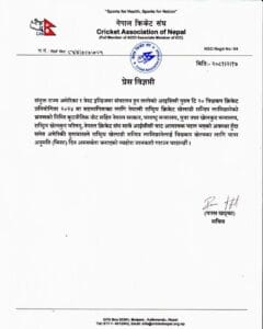 ‘संयुक्त राज्य अमेरिका र वेस्ट इन्डिजमा हुन लागेको आईसिसी पुरुष टी-२० विश्वकप २०२४ मा सहभागिताका लागि नेपाली राष्ट्रिय क्रिकेट खेलाडी सन्दीप लामिछानेको भ्रमणको निम्ति कूटनीतिक नोटसहित नेपाल सरकार, परराष्ट्र मन्त्रालय, युवा तथा खेलकुद मन्त्रालय, राष्ट्रिय खेलकुद परिषद्, नेपाल क्रिकेट संघ साथै आईसीसीबाट आवश्यक पहल भएको अवस्था हुँदासमेत अमेरिकी दूतावासले राष्ट्रिय खेलाडी सन्दिप लामिछानेलाई विश्वकप खेल्नका लागि यात्रा अनुमति (भिसा) दिन असमर्थता जनाएको व्यहोरा जानकारी गराउन चाहन्छौं,’ सचिव खड्काले विज्ञप्तिमा भनेका छन् ।