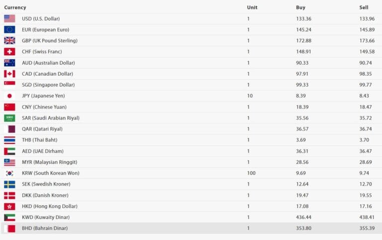 आज अमेरिकी डलर एकको खरिद दर १३३ रुपैयाँ ३६ पैसा रहेको छ भने बिक्री दर १३३ रुपैयाँ ९६ पैसा रहेको छ । युरोपियन युरो एकको खरिद दर १४५ रुपैयाँ ३१ पैसा रहेको छ भने बिक्री दर १४५ रुपैयाँ ८९ पैसा रहेको छ ।
