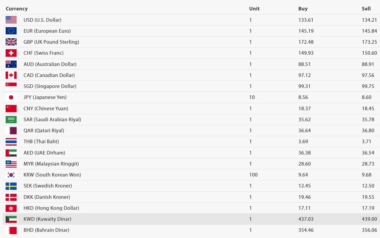 त्यस्तै, बेलायती पाउण्ड एकको खरिद दर १७२ रुपैयाँ ४८ पैसा र बिक्री दर १७३ रुपैयाँ २५ पैसा पुगेको छ। कतारी रियालको मूल्य एकको खरिद दर ३६ रुपैयाँ ६४ पैसा र बिक्री दर ३६ रुपैयाँ ८० पैसा रहेको राष्ट्र बैंकले जनाएको छ।
