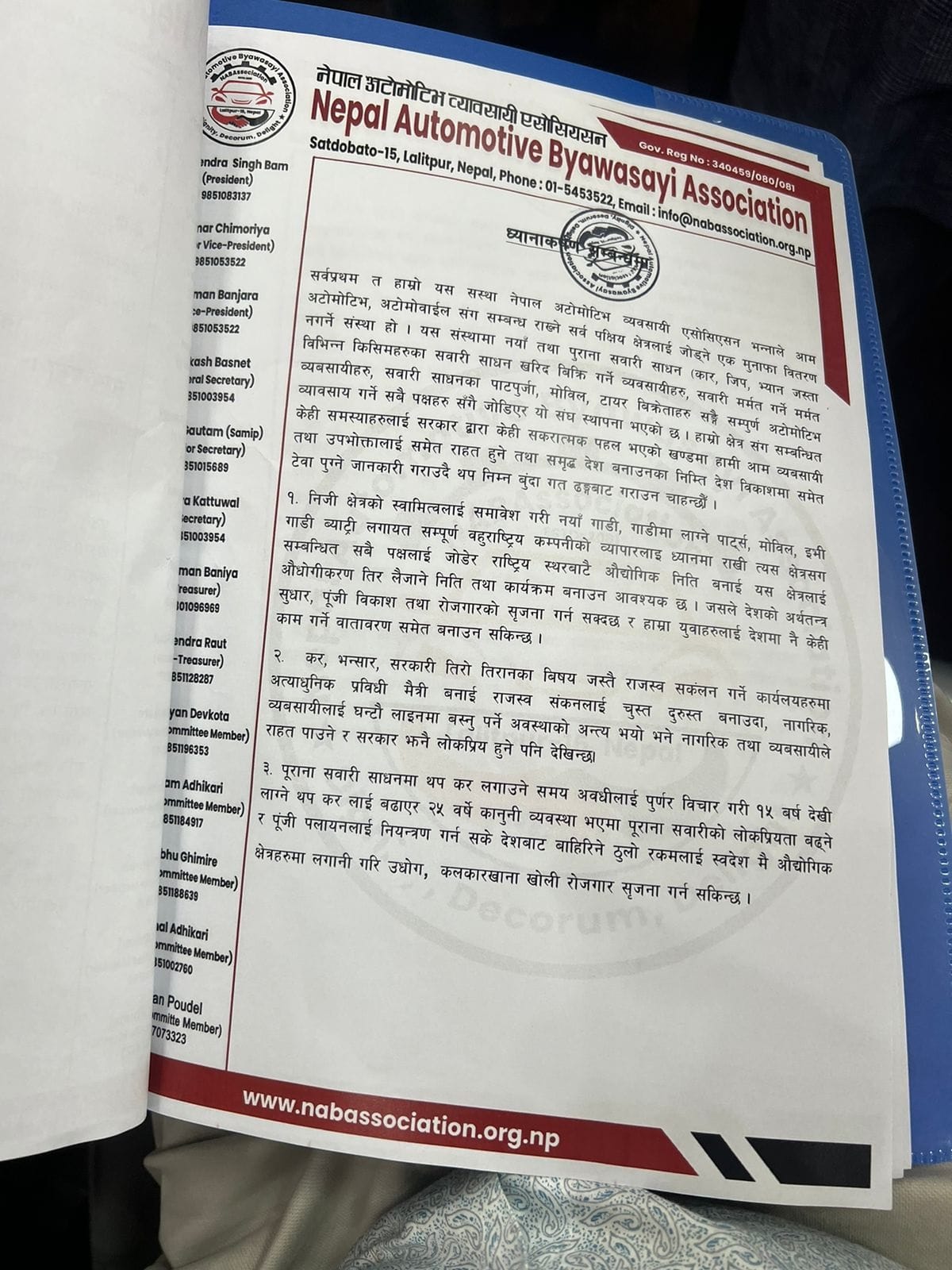 साथै यातायात कार्यलयमा हुने पाार्किङ्ग लगायतका समस्या, १५ वर्ष माथि थप करका विषय, सहजकर्ता उपलब्ध गराउने,आर्थिक कारोबार चेकमा गर्दा जोखिम जस्ता सात बुदे माग सहितका बिषयमा छलफल गरिएको बताइएको छ ।