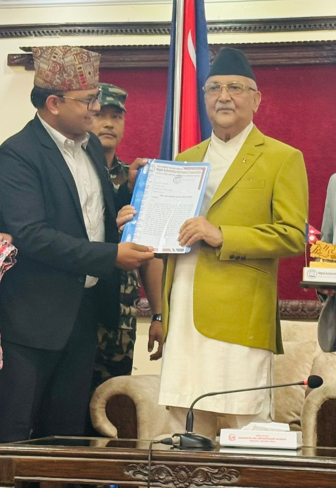 काठमान्डौं, नेपाल अटोमोटिभ व्यवसायि एसोसिएसनले प्रधानमन्त्री के.पि शर्मा ओलि संग भेटघाट गरि शुभकामना सहित यस व्यवसायको क्षेत्रमा देखिएका सम्पुर्ण समस्यालाई जानकारी गराउनुका साथै समाधानका उपाय बारेमा थप छलफल गरेको नेपाल अटोमोटिभ व्यवसायि एसोसिएसनले बताएको छ ।