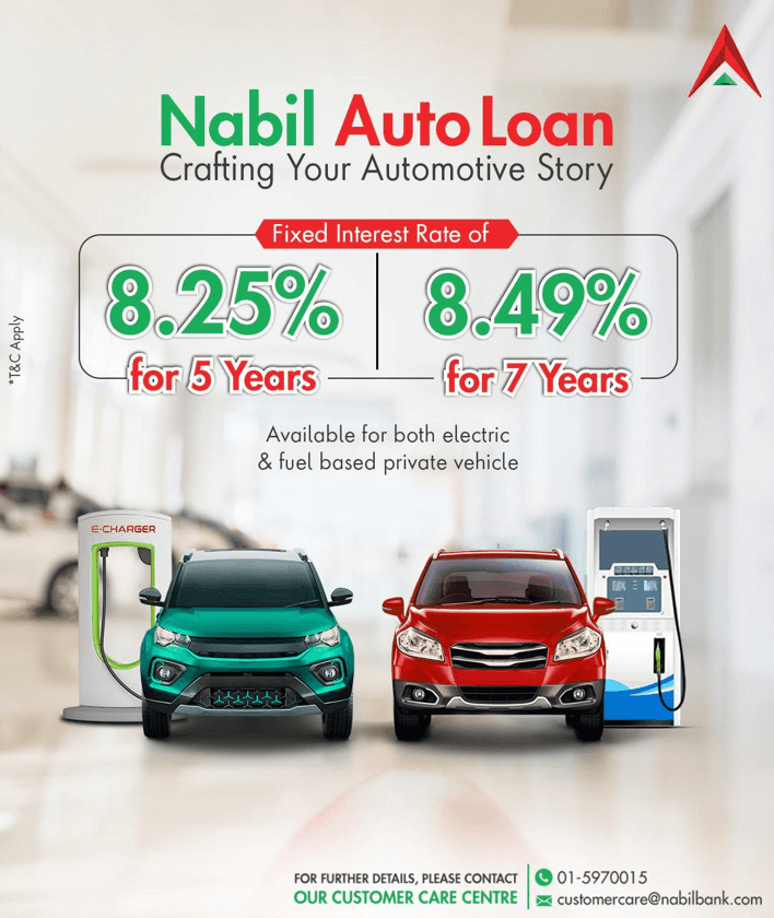 यस योजनाअन्तर्गत, नबिल बैंकले ५ वर्षका लागि ८.२५ प्रतिशत र ७ वर्षका लागि ८.४९ प्रतिशत स्थिर ब्याजदरको आकर्षक प्रस्ताव ल्याएको छ । यसले अटो मोबाइल खरिद गर्न चाहने ग्राहकहरूलाई दीर्घकालसम्म सुलभ र स्थिर वित्तीय सहायता उपलब्ध गराउन मद्दत पु¥याउने विश्वास गरिएको छ ।