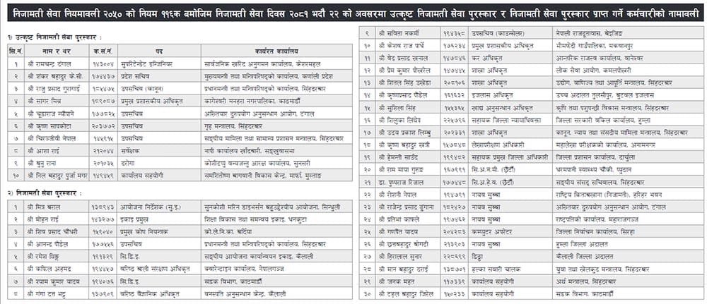 पुरस्कार पाउने कर्मचारीको सूची :