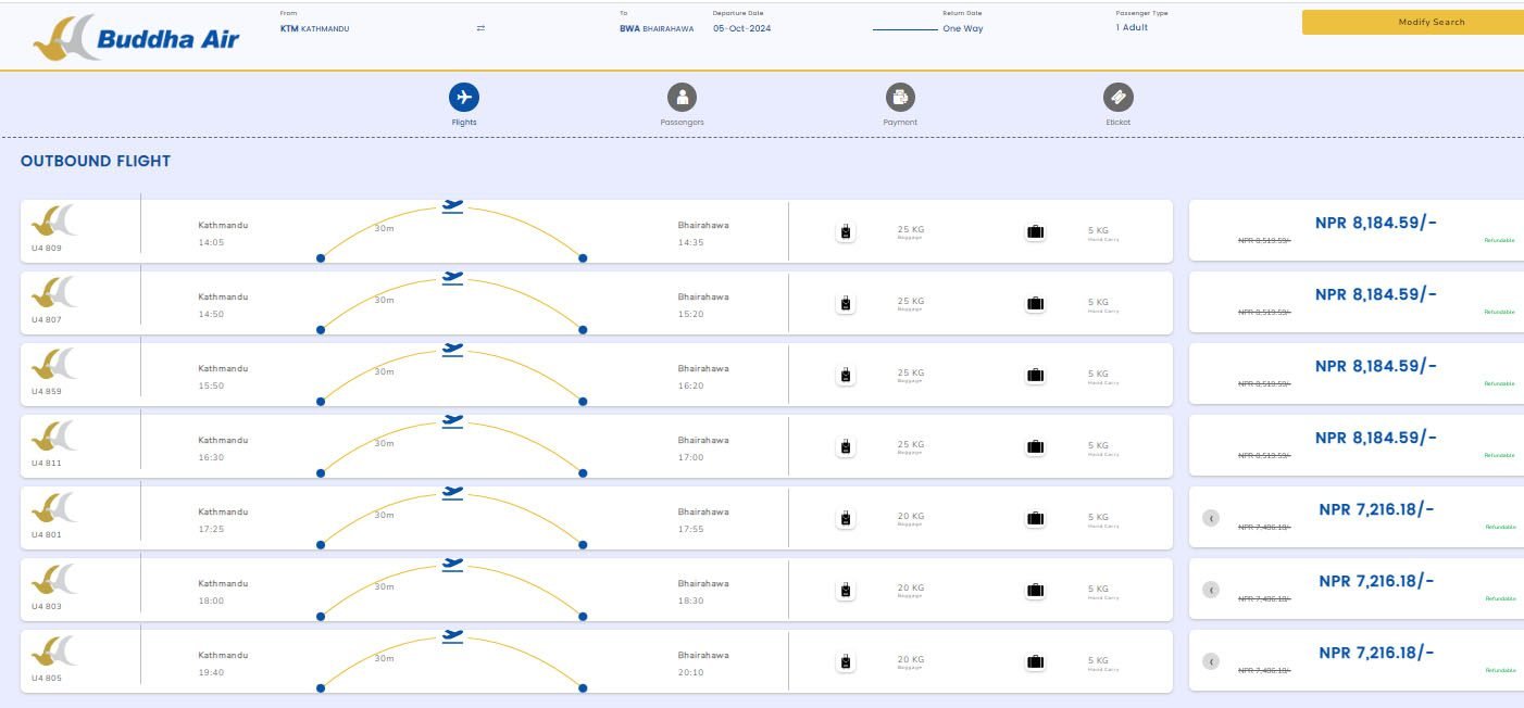तर वास्तवमा भने हवाई भाडामा कुनै कमी आएको देखिएको छैन । कुनै पनि हवाई कम्पनिको आगामी शुक्रबारसम्मका लागि कुनै टिकट नै उपलब्ध रहेको छैन । शनिबारका लागि बुद्ध एयरले काठमाडौँदेखि भैरहवाको भाडा रु. ७२१६.१८ देखि ८१८४.५९ सम्म देखाएको छ । त्यस्तै इसेवामा बुद्ध एयरको ८५६४ रहेको छ भने श्री एयरको ८५ सय भाडा रहेको छ ।