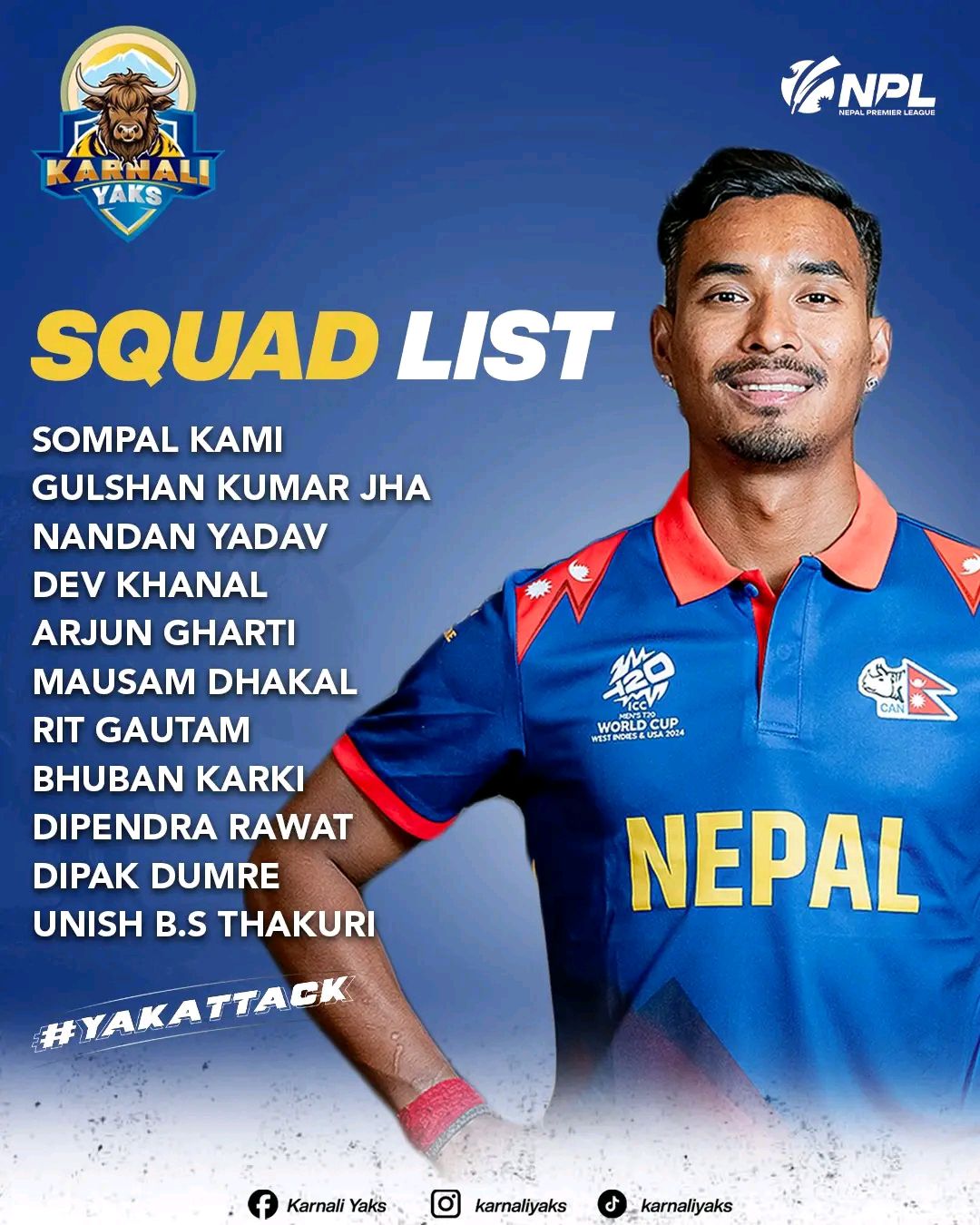 लुम्बिनी र जनकपुरलाई टक्कर दिने अर्को टिम कर्णाली यक्स हो । ७ टिमको रोजाइमा परेका र अक्सनको सबैभन्दा आर्कषक देखिएका गुल्सन झालाई कर्णालीले पाएको छ । सोमपाल कामी मार्की खेलाडी पाएको कर्णालीले गुल्सनसहित अर्जुन घर्ती र नन्दन यादवलाई टिममा भित्र्याएर अन्य टिमलाई टक्कर दिएको छ । तुलनात्मकरुपमा १२ टिममध्ये चितवन राइनोज कमजोर देखिएको छ । कुशल मल्ललाई मार्की खेलाडी पाएको चितवनले कुनै पनि खेलाडी अधिकतम मूल्यमा किनेको छैन । पहिलो पटकहुन लागेको नेपाल प्रिमियर लिग नेपाल क्रिकेट संघ क्यानको आयोजनामा आगामी मंसिर १६ देखि कीर्तिपुरस्थित त्रिवि मैदानमा हुनेछ ।