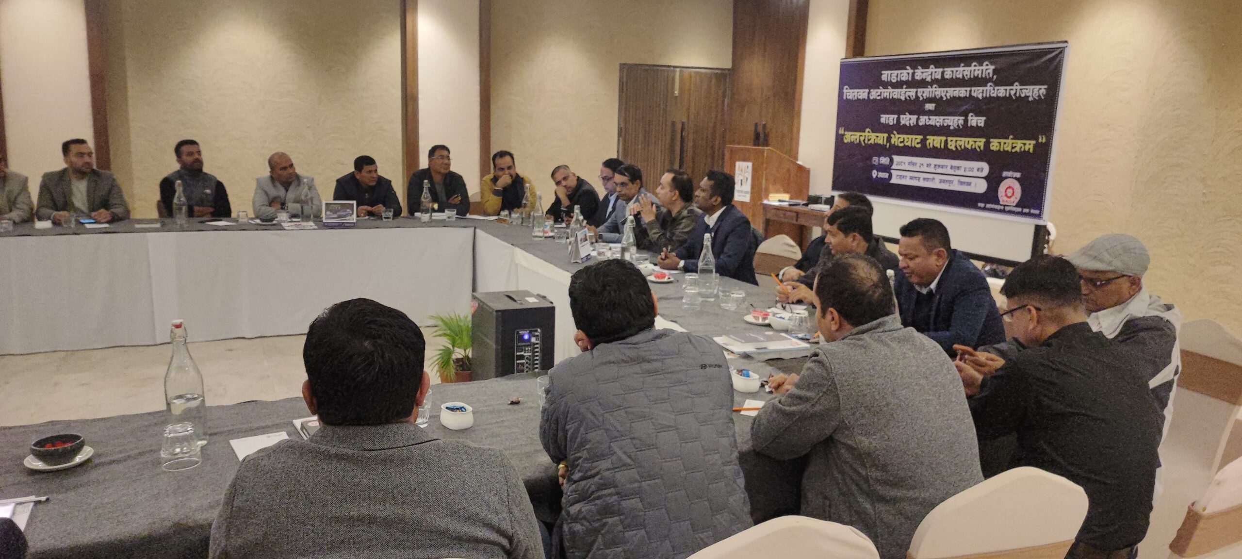 काठमाडौं । चितवनमा नाडा अटोमोवाइल्स एशोसिएशन अफ नेपाल, चितवन अटोमोवाइल्स एशोसिएशन र नाडा प्रादेशिक एशोसिएशनका अध्यक्षहरुविच बृहत अन्तरक्रिया कार्यक्रम सम्पन्न भएको छ । नाडाका प्रदेश उपाध्यक्ष तेजनारायण साहको प्रमुख आतिथ्यतामा अटोमोवाइल क्षेत्रका समसामयिक विषयहरुमा बृहत छलफल भएको थियो ।