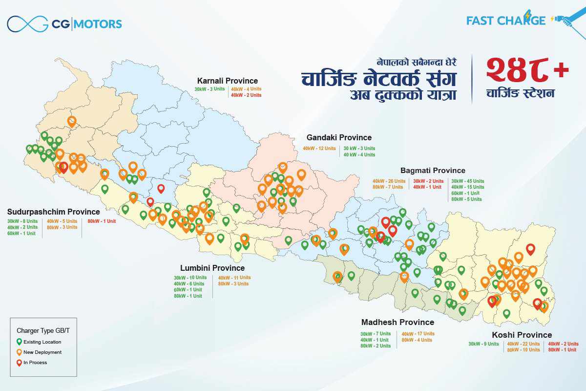 चार्जिङ पूर्वाधारको विस्तारले नेपाललाई विद्युतीय साधनतर्फ अघि बढाउन महत्वपूर्ण भूमिका खेल्छ। व्यापक र भरपर्दो नेटवर्क उपलब्ध गराएर, सीजी मोटर्सले रेन्ज एंग्जाइटी हटाउँदै ईभी प्रयोगकर्ताहरूलाई तनावमुक्त रहने सेवा प्रदान गरिरहेको जनाएको छ। प्रमुख शहरहरूमा होस् वा मुख्य राजमार्गहरूमा, सीजी मोटर्सका चार्जिङ स्टेसनहरूले ईभी चालकहरूलाई आत्मविश्वासका साथ यात्रा गर्न सक्षम बनाएको बताइएको छ ।