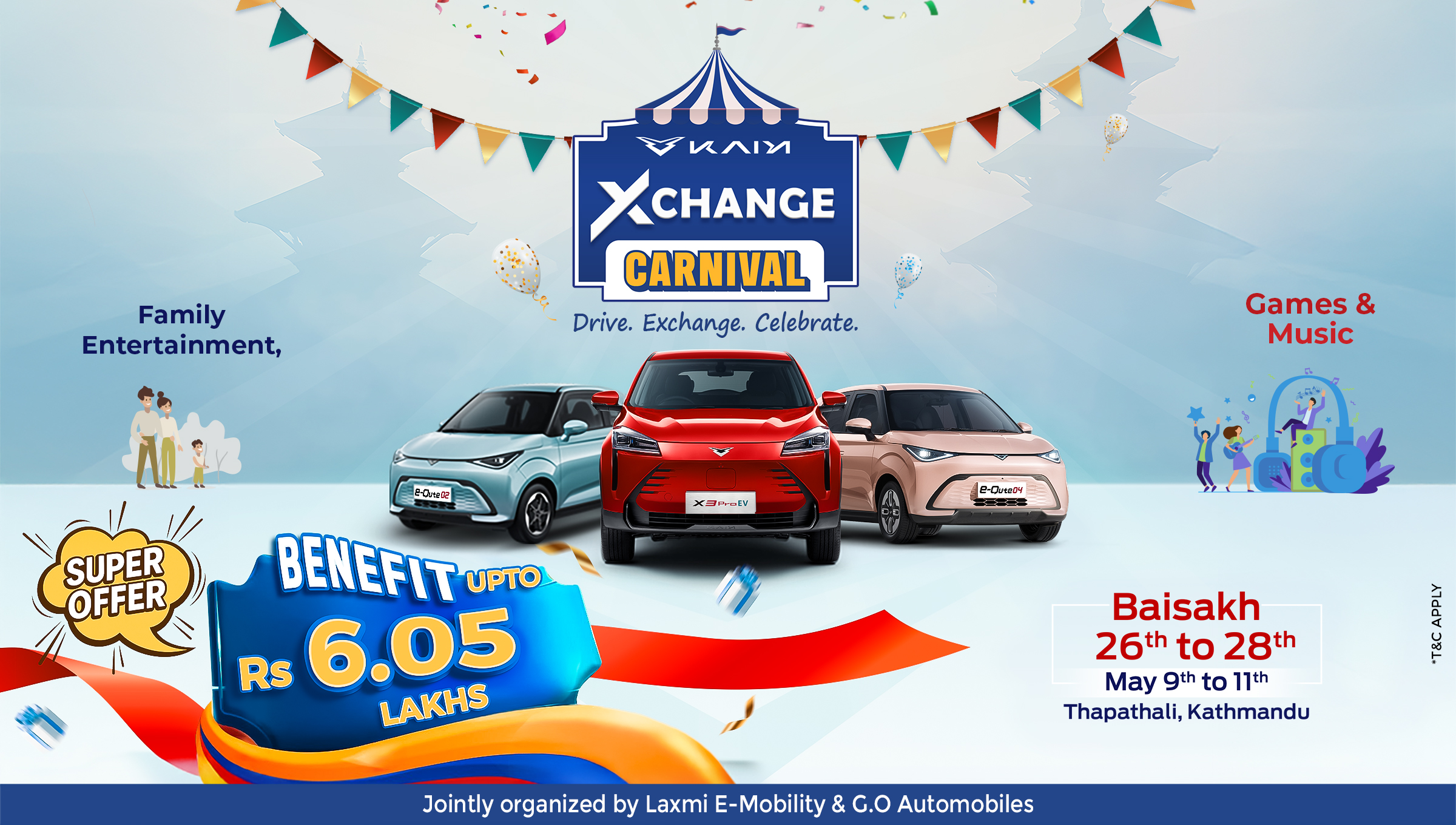 केई नेपालले सबै परिवारहरू, इभि प्रेमीहरू र अपग्रेड खोज्ने कार मालिकहरूलाई एक्सचेन्ज कार्निवल २०८२ मा भ्रमण गर्न र गतिशीलता र नवीनताको भव्य उत्सवको हिस्सा बन्न आवहान गरेको छ ।