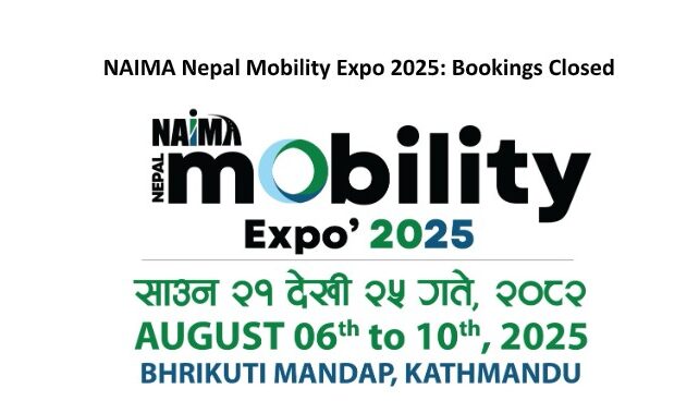काठमाडौं । नेपाल अटोमोबाइल इम्पोर्टर्स एण्ड म्यानुफ्याक्चरर्स एसोसिएसन (नाइमा) ले “गतिशीलता मार्फत विकासलाई सशक्त बनाउँदै” भन्ने सन्देशसहित अगस्ट ६ देखि १०, २०२५ (२१ देखि २५ श्रावण २०८२) सम्म काठमाडौंको भृकुटी मण्डपमा आयोजना हुने नेपाल गतिशीलता एक्स्पो २०२५ को पहिलो संस्करणको बुकिङ बन्द भएको घोषणा गरेको छ।