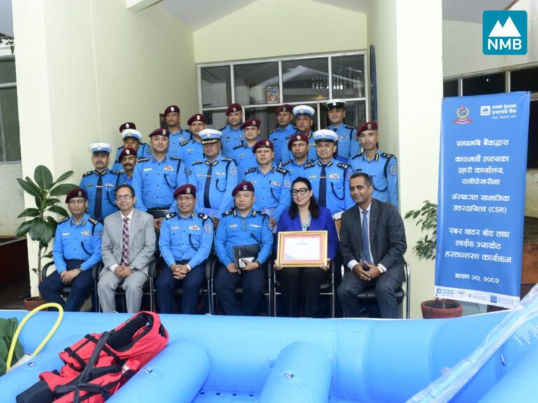 काठमाडौं । मनसुनको मौसम र यसमा देखिने अस्थिरता तथा सम्भावित जोखिमलाई मध्यनजर गर्दै, एनएमबि बैंकले आफ्नो सामाजिक उत्तरदायित्व अन्तर्गत एउटा १६ फिटको सेल्फ-बेलिङ राफ्ट, लाइफ ज्याकेटहरु, र अन्य विपद् उद्दार सामग्रीहरु नेपाल प्रहरीलाई हस्तान्तरण गरेको छ ।