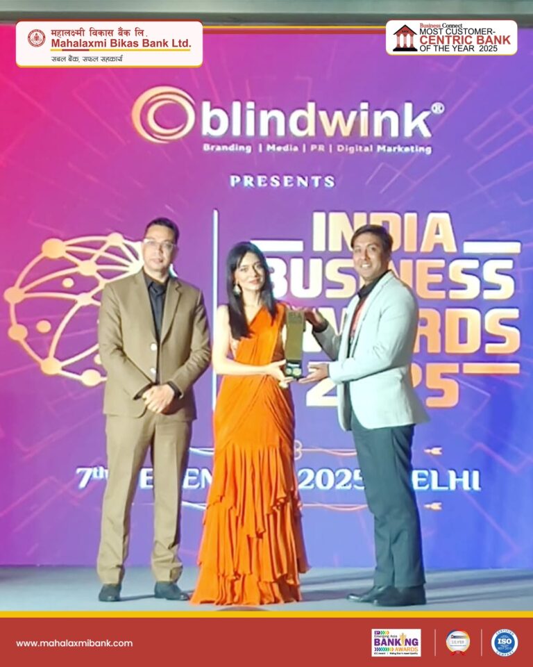 डिसेम्बर ०७, २०२५ मा भारतको नयाँ दिल्लीमा आयोजित एक कार्यक्रमका बीच महालक्ष्मी विकास बैंकलाई उक्त अन्तराष्ट्रिय अवार्ड प्रदान गरेको हो । महालक्ष्मी विकास बैंकको तर्फबाट यस बैंकका वरिष्ठ अधिकृतहरुले उक्त सम्मान ग्रहण गर्नुभएको हो ।