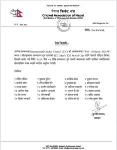 टी–२० विश्वकपको तयारीका लागि २४ खेलाडीको नाम सार्वजनिक