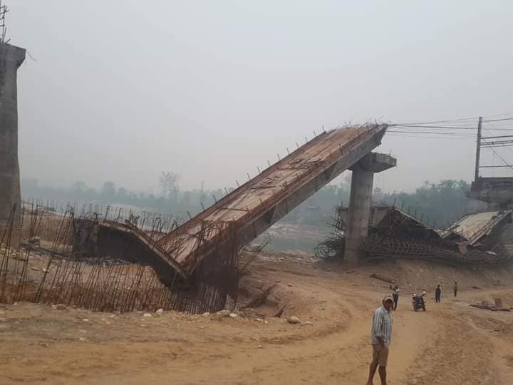 २१ करोडको लागतमा बन्दै गरेको पुल भत्कियो