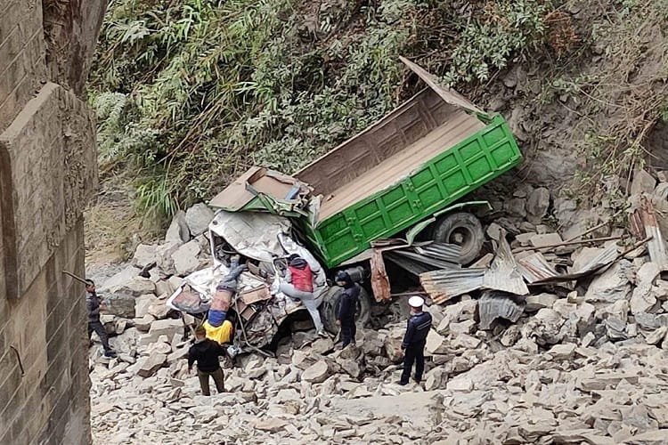 नारायणगढ-मुग्लिन सडकखण्डको तीन नम्बर पुलबाट खस्यो ट्रक