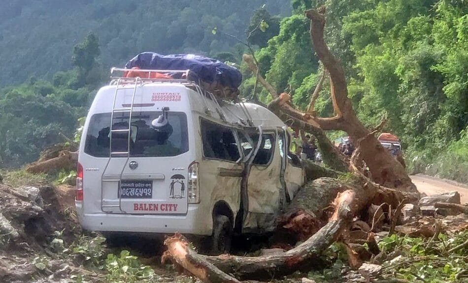 धादिङमा गुडिरहेको माइक्रो बसमाथि रुख ढल्यो, ७