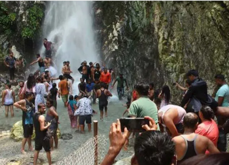 गर्मी बढेपछि महभिर झरनामा पर्यटकको घुइँचो