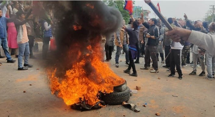 विराटनगरमा प्रहरीद्वारा अश्रुग्यास प्रहार, मुख्यमन्त्रीको पुतला दहन