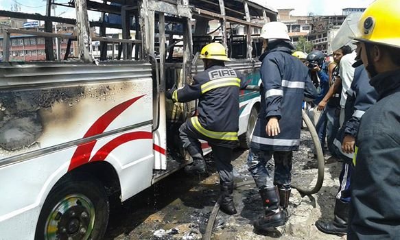 राजधानीको पुरानो बसपाकॅमा बन्दकर्ता द्वारा रोकिराखेको बसमा