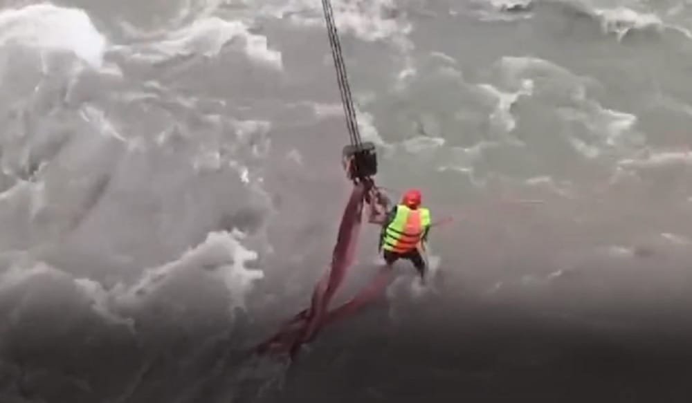 भोटेकोशीमा खसेको गाडी क्रेनले निकालियो, यात्रु बेपत्ता