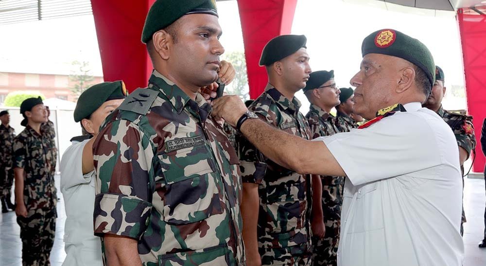 नेपाली सेनाका नव नियुक्त अधिकृतहरूलाई दर्ज्यानी चिन्ह